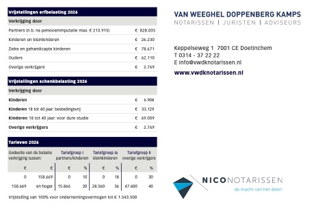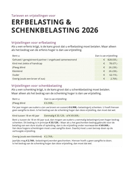 Tarieven en vrijstellingen voor ERFBELASTING & SCHENKBELASTING 2026